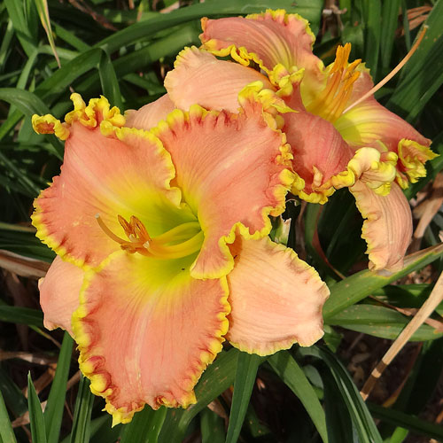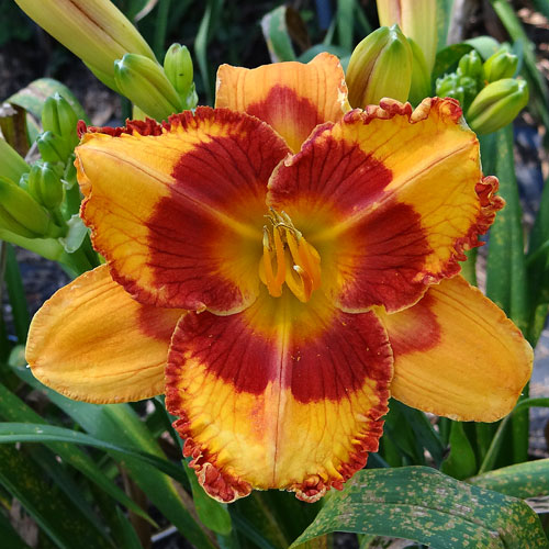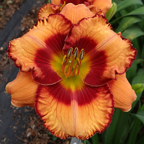 Seedling 13-069 has 6" blooms on 28" scapes and comes from the cross (Orange City X Caribbean Magic).