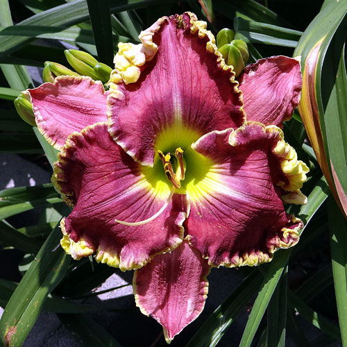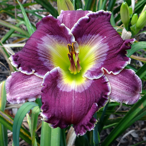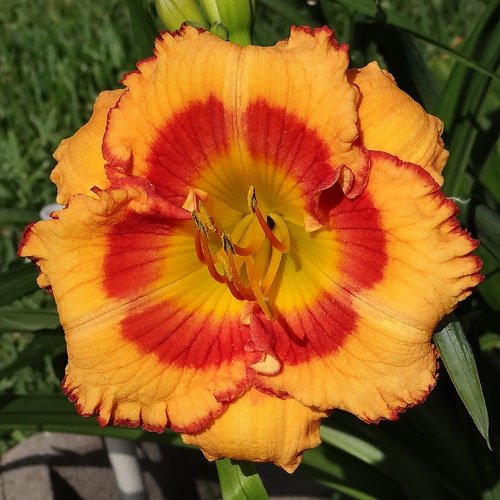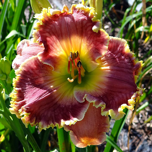 Seedling 16-004 has 5.5" blooms on 20" scapes. It comes from the cross (Violet Stained Glass X Serengeti Sunrise). Bud count is quite underwhelming but it makes a nice, albiet short show in the garden.