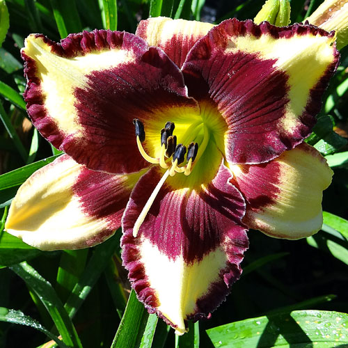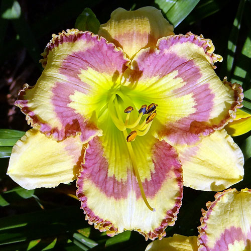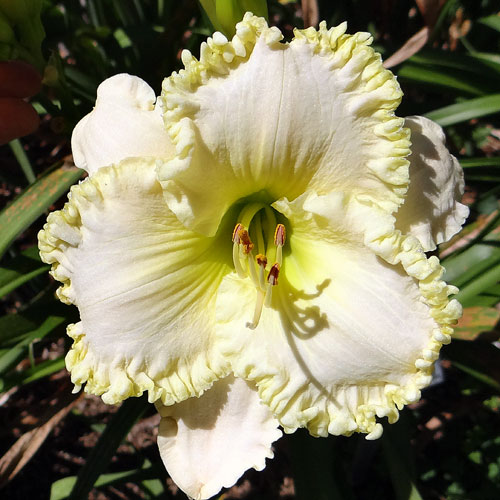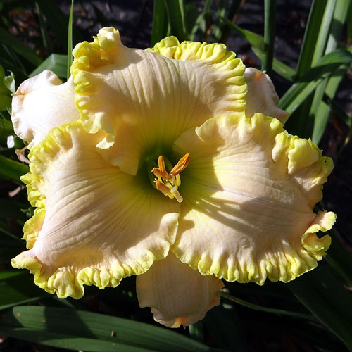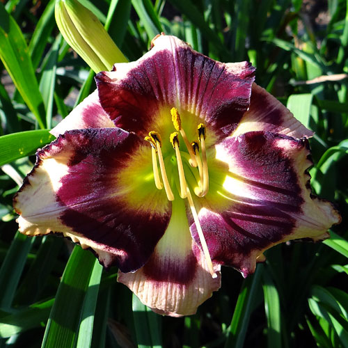 Seedling 07-013 is one where sometimes it can appear to have a lot of blue in the eye. It's not so apparent in bright sunlight but in shade the blue becomes more apparent. It's an oldie for me but I keep it around because I like it. It has 6.0" blooms on 28" scapes and comes from the cross (Web Of Intrigue X Optical Art).