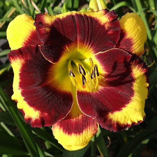 Seedling 15-024 has 5.5" blooms on 26" scapes and comes from the cross (Hedwig's Eyes X Dragon Knife). The intense bright yellow color really stands out in the garden.
