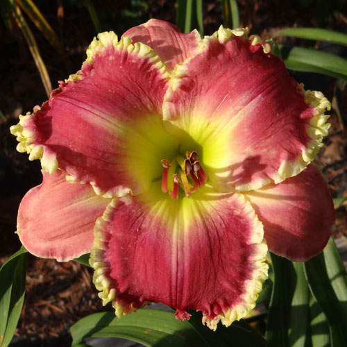 Seedling 14-025 has 6" blooms on 25" scapes and comes from the cross (Cimarron Rose X Priscilla's Smile).