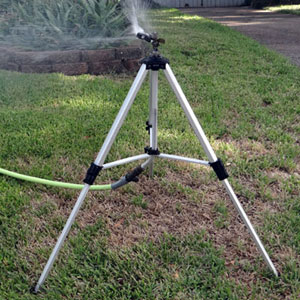 For years I fought the battle of trying to find the right sprinkler to water both the lawn and the daylilies. I tried oscillating sprinklers, rotary sprinklers, and impact sprinklers. While results were mixed, they all succeeded in watering the lawn but didn't work so well on the daylilies especially the larger beds in the back yard. The problem... they had to be placed at ground level so I couldn't place a sprinkler directly inside the beds. Then I read a post from another daylily grower who solved the problem using what they called a "rain tree". Today it's just called a tripod based sprinkler. I bought one and the daylily watering problem was solved. It works great on the lawn too. Oh, the dead spot on the lawn under the sprinkler is the result of chinch bugs that got ahead of me AGAIN this year (sigh...).